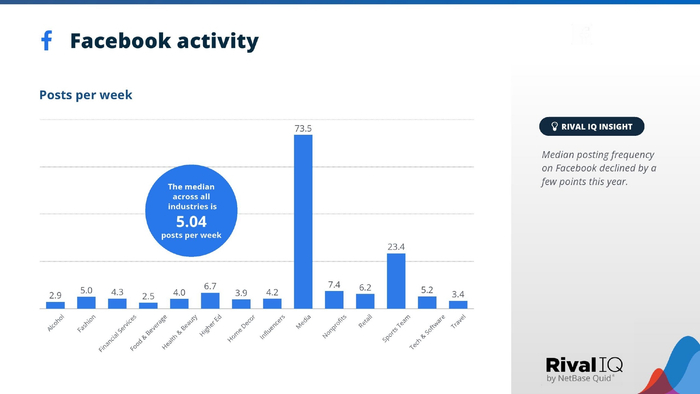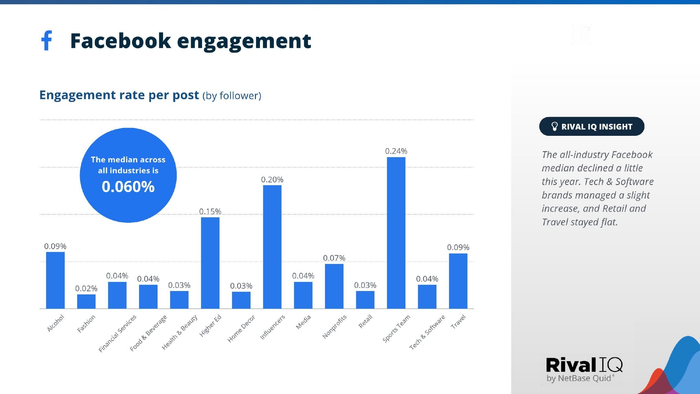 今年,全行业的Facebook中值略有下降。科技和软件品牌略有增长,零售和旅游保持平稳。