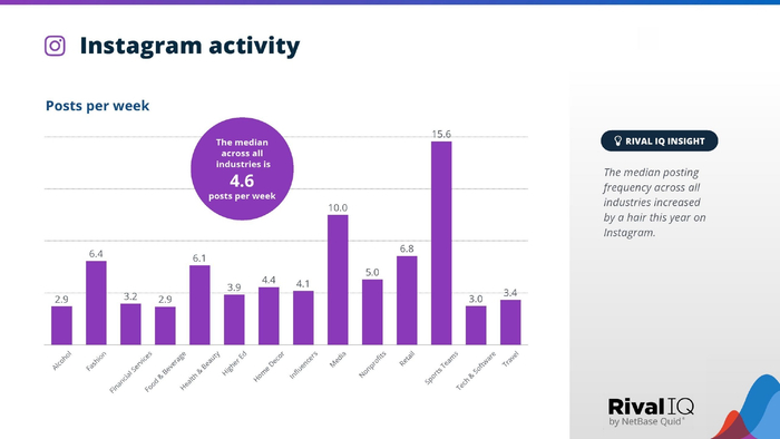 今年在Instagram上,所有行业的平均发帖频率都增长了一点点。