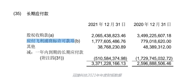 数据显示,买方公司2021年应付飞利浦的商标许可款项就高达17.78亿元!