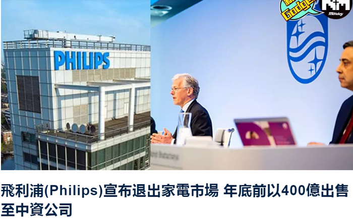 2021年,飞利浦宣布以37亿欧元的价格,将家用电器部门出售给了高瓴资本。