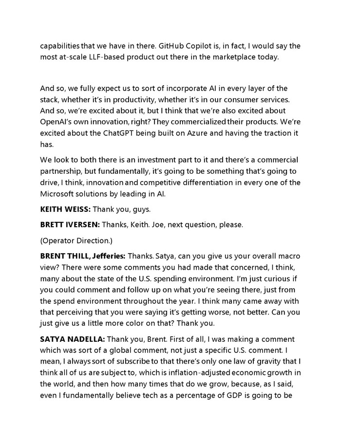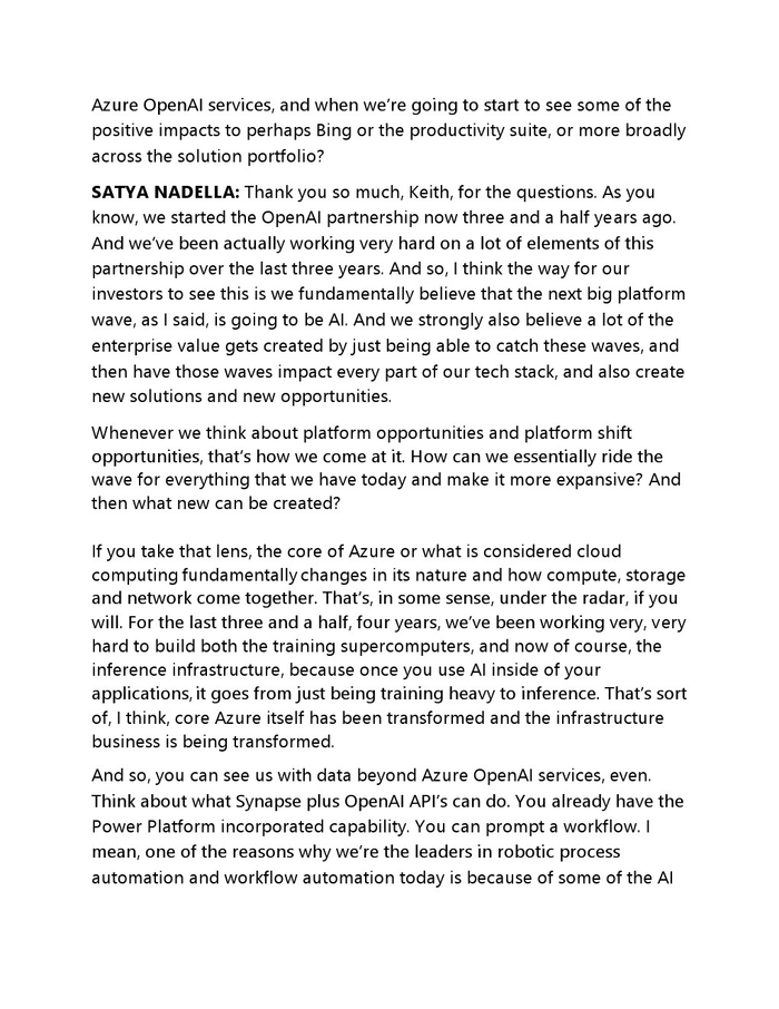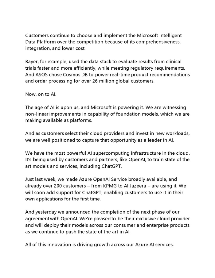 虽然云收入已经上升了一段时间,但该公司计划通过向 ChatGPT 创建者 OpenAI 投资 100 亿美元,并与这家 AI 非营利性初创公司达成独家云提供商协议,进一步提高其在这一领域的收入,有效地将 OpenAI 集成到微软的许多产品中。 这还包括其搜索引擎必应,该计划导致竞争对手谷歌发布红色代码,这表明对其商业模式构成严重威胁。