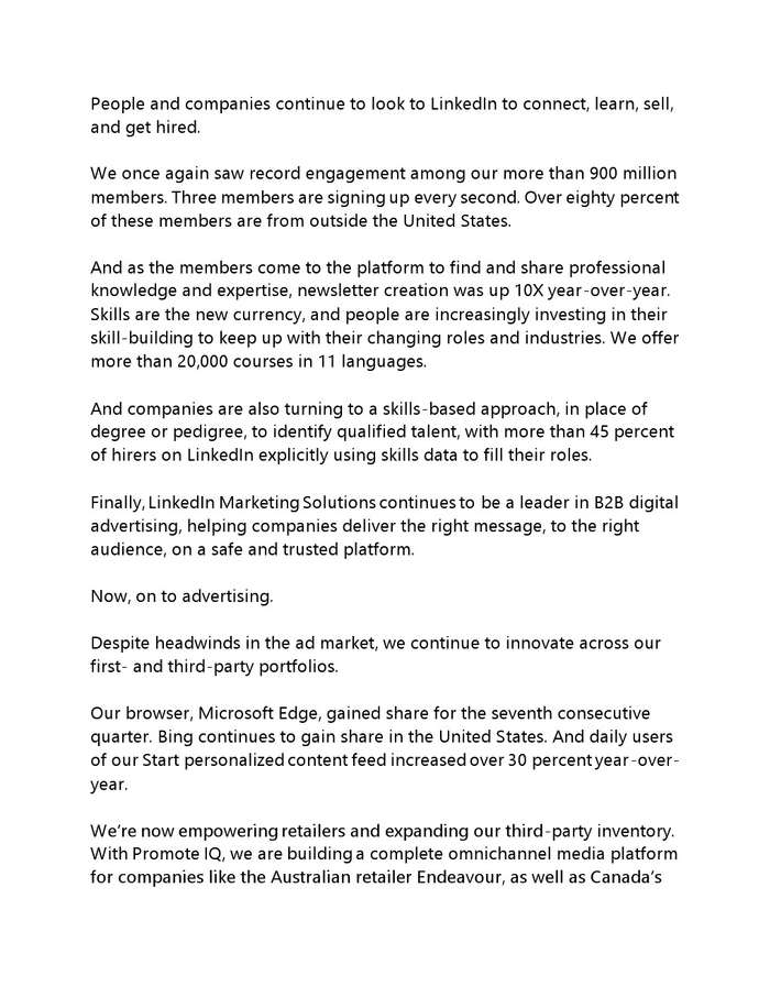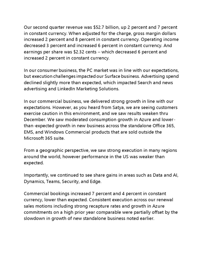 Azure、Office 365 Commercial 和 LinkedIn 商业产品的收入达到 271 亿美元,同比增长22% ,相当于50 亿美元。服务器和办公部门继续保持趋势,约占这家科技巨头 2023 财年第二季度收入的 60%。