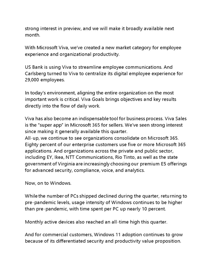 微软的游戏部门在 2021 年 10 月至 2022 年 1 月期间创下了创纪录的数字,这可能是由于 Xbox Game Pass 的持续增长和备受期待的新 Halo 游戏的发布,从 2022 年的数字中反弹。不过, 自大流行开始以来,它的表现是第四季度中最糟糕的。如果备受关注的 Activision Blizzard King 收购成功,该细分市场可能会超越 Windows 产品,成为该公司的第三大收入支柱。进一步整合视频游戏市场的举措目前面临越来越大的阻力,欧洲和美国监管机构正在对该交易进行严格审查。