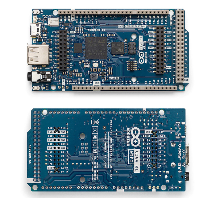 IT之家 3 月 6 日消息,Arduino 家族又添新成员,其新推出的 GIGA R1 WiFi 开发板基于双核 Arm 架构 MCU,外形与现有 Mega 和 Due 相同,尺寸仅 101 x 53 mm,提供 76 个 GPIO 引脚,而且支持无线网络。这是 Arduino 迄今为止最强的开发板,售 72.82 美元(IT之家备注:当前约 503 元人民币)。