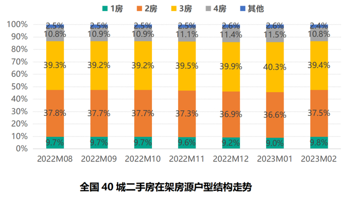 2.全国40城二手房各户型在架房源量