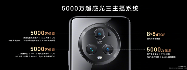 影像方面,荣耀Magic5采用了5400万主摄(1/1.49英寸)+5000万超广角+3200万长焦,拥有色温传感器+Flicker,支持最大50倍变焦拍摄。