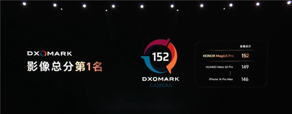 得益于这套强大的影像系统,荣耀Magic5 Pro也在DXOMARK的测试下拿到了全球第一的成绩,拿下了152分的高分,超过华为Mate50 Pro和iPhone 14 Pro Max。