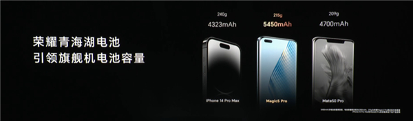 荣耀Magic5 Pro/至臻版则首发了青海湖电池技术,业首发硅碳负极电池技术,这是硅碳负极电池技术首次在手机产品上商用,负极能量密度比普通石墨负极电池提升了16%,达到了5450mAh的容量,但机身却明显更轻薄,同时支持66W有线快充、50W无线快充。