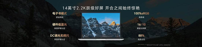 屏幕方面,荣耀MagicBook X Pro系列搭载2.2K高色域护眼大屏,拥有16:10黄金显示比例,莱茵双重护眼认证,配合独有的电子书模式,为用户带来更安心的护眼保障和更优质的阅读体验。