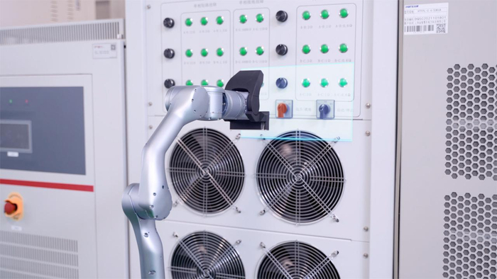 宇树四足机器人B1搭载宇树自研的灵巧机械臂Z1,配有深度相机,可利用Al算法智能识别目标,自主完成操控开关、按钮等工作。