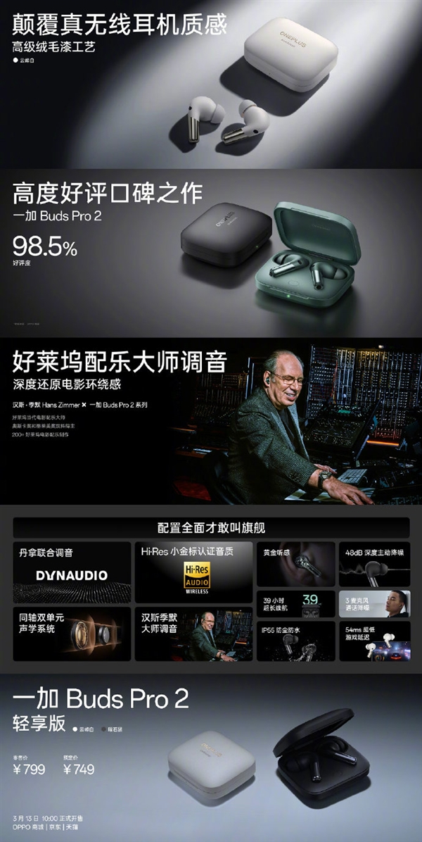 首发749元 一加Buds Pro 2轻享版发布:丹拿联合调音