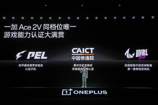 凭借出色的游戏性能表现,一加Ace 2V 成为和平精英赛事实验室认证手机、英雄联盟手游亚洲联赛第一赛季推荐用机,并获得泰尔实验室移动端手游性能认证。