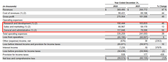2022年公司的收入成本同比增长44%至9943.1万美元,其中研发费用同比增加45%至1.5亿美元,一般及行政费用同比上涨50%至1.18亿美元,销售费用为6696.7万美元,同比也增加了近13%。在连连亏损的状态下,公司各项开支同比却出现大幅度的增长。成本难以控制,大概也是导致多邻国接连亏损的重要因素。