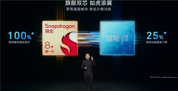 在两颗芯片的协同作用下,荣耀80 GT的游戏帧率最高提升100%,也就是翻倍提升,而功耗可以降低25%,大幅提升游戏续航,降低游戏发热。