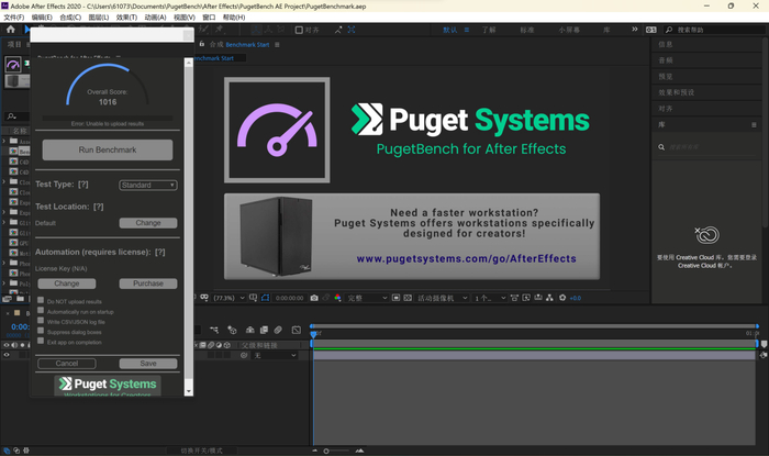 视频编解码一直是英特尔 Xe 核显的强项,所以我们用 PugetBenchmark For PR 和 AE 这两款常用的软件来测试它在视频剪辑和特效制作方面的性能。结果显示灵耀14 2023 在 PR 中得到了 483 分,AE 成绩更是高达 1016 分,完全可以应付 1080P 的短视频制作了。