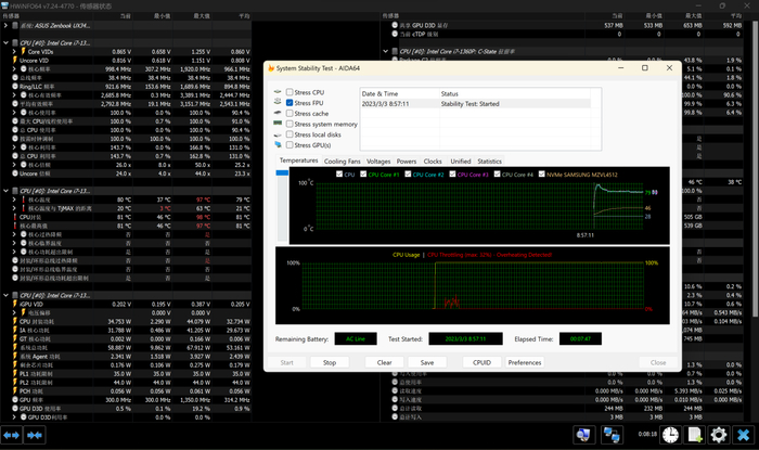 实测高效模式下单烤 FPU 15 分钟 CPU 能够稳定在 35W、80℃左右,能够满足 H35 处理器的需求,更别说 P28 处理器了,而且此时风扇声音并不吵,很适合日常办公。
