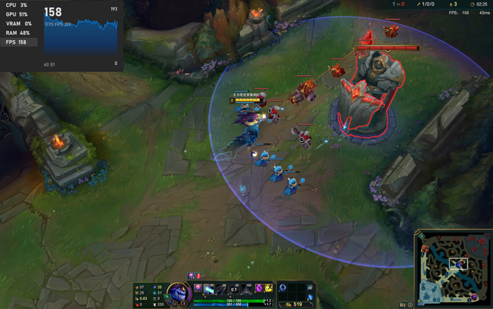 《英雄联盟》可以运行在 155 帧左右,也能满足 2.8K 90 帧以上畅玩。