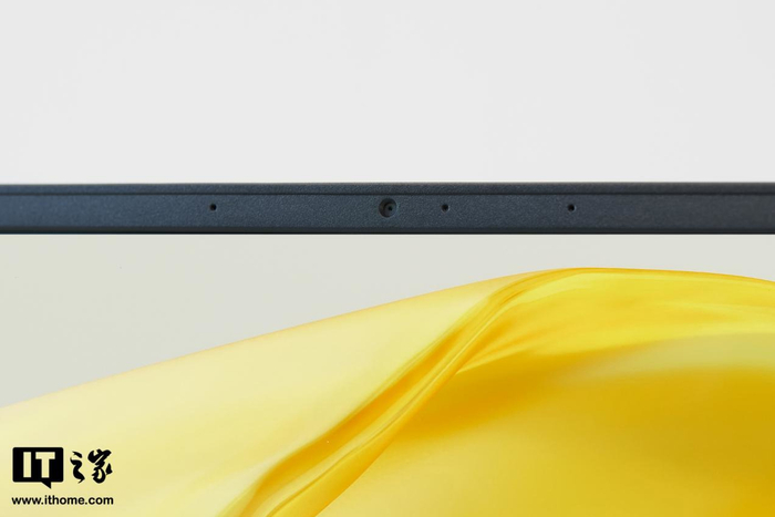 屏幕上方是 1080p 高清摄像头和双麦克风,支持 3DNR 视频降噪和 AI 语音降噪。