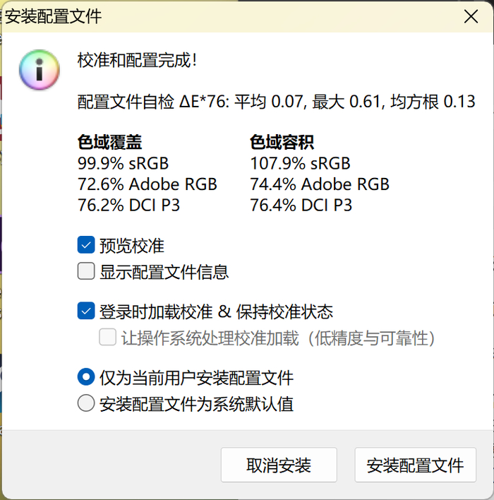 每一块华硕好屏都经过出厂校色,灵耀14 2023 这块自然也不例外。它的色准方面也很惊艳,在平均 ΔE 仅 0.9、最大 ΔE 只有 1.88,完全能用来进行专业级别的内容创作了。