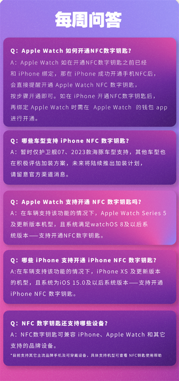 3月8日消息,比亚迪宣布开通了iPhone和Apple Watch的NFC数字钥匙功能,该功能目前仅支持护卫舰07及2023款海豚两款车型。