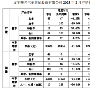 3月7日,ST曙光公告称,公司2月整车销量101辆,同比下滑41.62%;前2月整车销量235辆,同比下滑46.22%——对于一家整车车企来说,将将过百的月销量,基本等于宣告“死亡”。