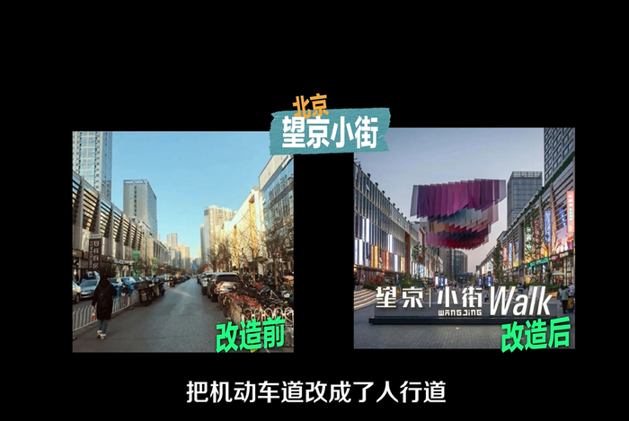 时代广场改造后,相邻街道的平均车速提高了7%,交通事故死伤人数下降了35%。关键是人流量多了起来,商业活力也重新被激发。380米长的望京小街,改造后人流量从四千多增加到了一万以上,附近商场门店的收入也得以提升了40%。