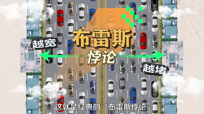 但为啥还是堵?早在上世纪,就有学者揭露了一个残酷的事实:拓宽马路,并不能解决堵车。路越宽,开车走这条路的人也越多,也就越容易堵。这就是经典的“布雷斯悖论”。