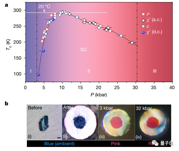 这是团队测量这种材料实现超导所需的温度条件和压强图,其中在1GPa的时候,材料能在接近21℃的温度条件下实现超导: