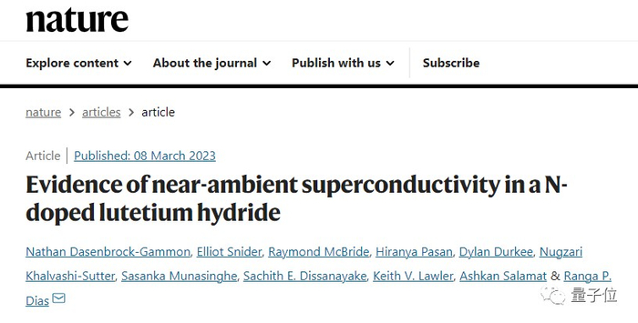 就在今天凌晨,Nature还正式发表了Dias团队的新论文。时间戳显示,这篇论文在2022年8月投出,今年1月18日被Nature接收。