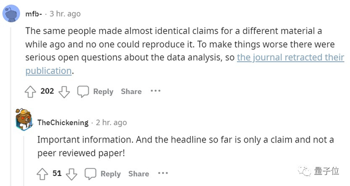 另一方面也有网友表示,对于这类研究,最好还是等一等同行复现的结果: