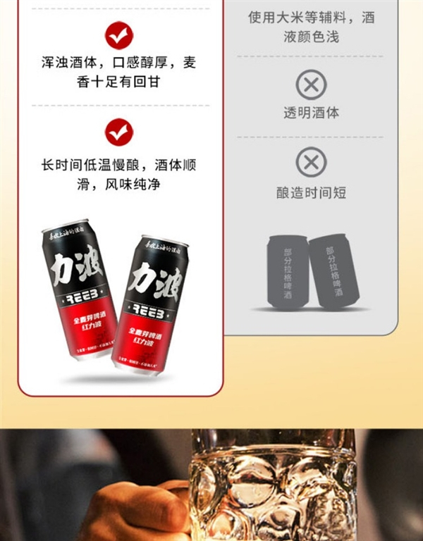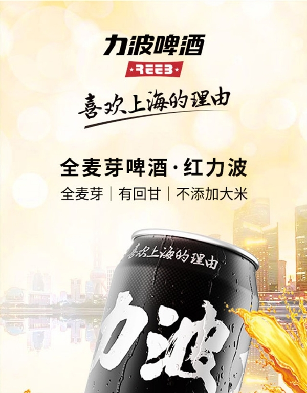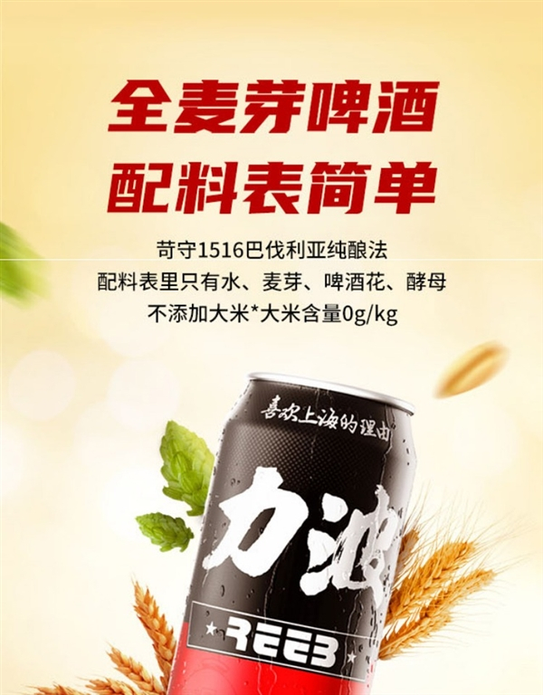 全麦芽 口感回甘:上海力波500ml精酿啤酒2.5元/罐抄底