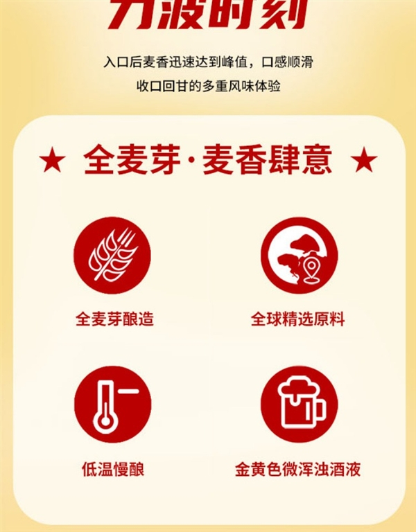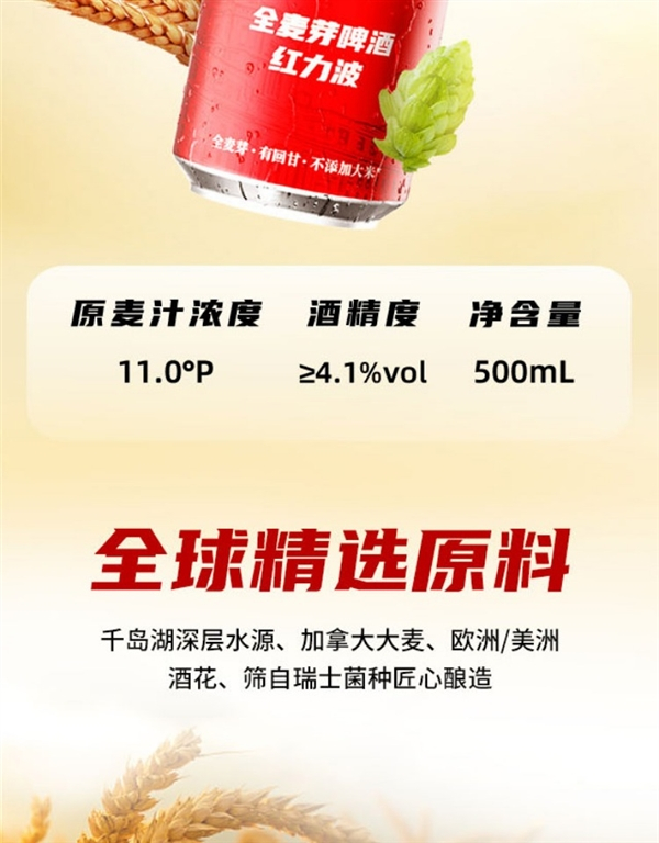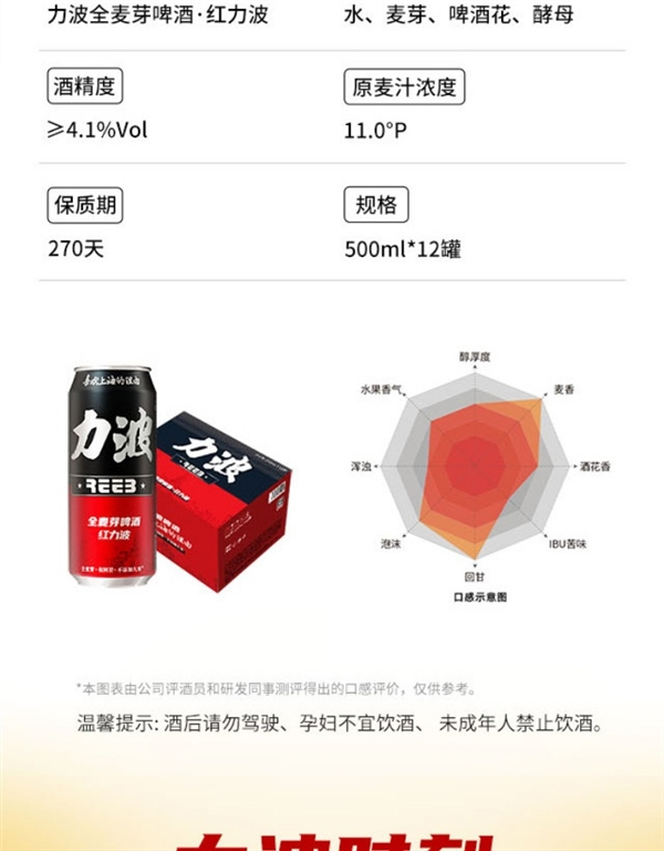 酒精度≥4.1%Vol,原麦汁浓度11.0°P,保质期270天。