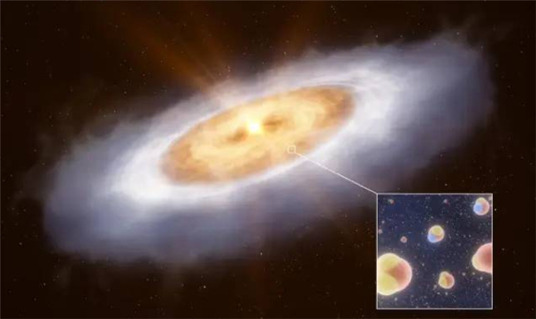 在几百万年的时间里,圆盘中的物质聚集在一起,形成彗星、小行星,并最终形成行星。