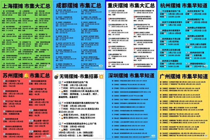 小红书网友@市集汇 整理的市集信息