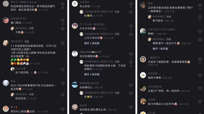 即使是很多免门票的市集,还是能看到博主在晒出自己的体验游玩感受之后,评论区会有很多人“结束了吗?现在还开吗?”“报一下坐标,我也想去”等类似的评论。博主只能无奈回复:“你错过了,便是错过了……”