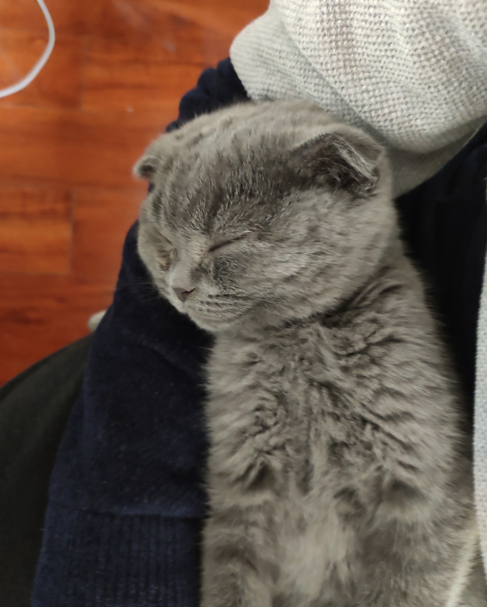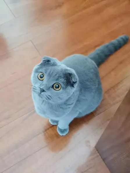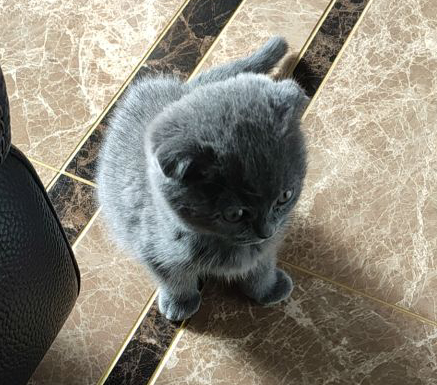 那天我作为参谋也被拉了过去,在各路猫狗的吵闹声中逛得晕头转向,直到一个怯生生的身影吸引了我的注意,那是一只折耳蓝猫,瑟缩在笼子的一角,十分不起眼。