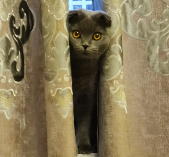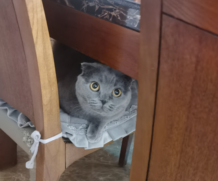 蓝猫刚到家时几乎不和任何人接触,只敢远远地观察我们,每当我们想要靠近她,她就会如同一阵风一样消失不见,我只能远远地和她打招呼,后来借此机会,干脆给她起名为“吱溜”。