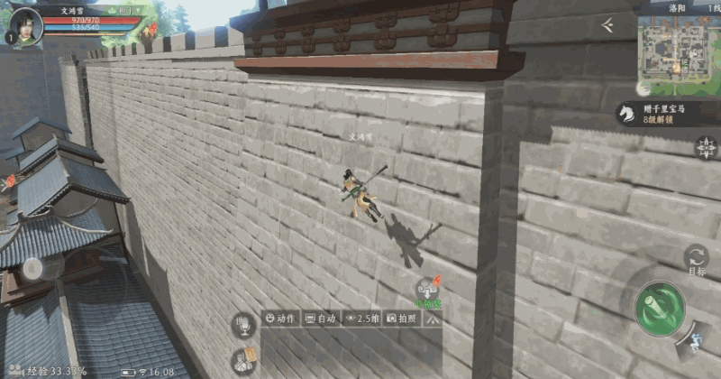 有了轻功的帮助,玩家能在游戏里蜻蜓点水走水路,不必担心自己仍然“遇水即化”;可以沿着城楼字面意思地飞檐走壁,看到不走寻常路的大侠眼中的城市;又或者在一个又一个树梢间落脚,从空中闯进山门空降人群中,这些都能在这里成为现实。