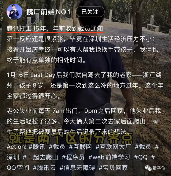 黄希彤夫人在“鹅厂前端No.1”这一账号中透露:(黄希彤)在鹅厂打工15年,年前收到裁员通知。