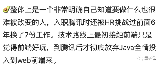 入职腾讯前,他其实做的是后端Java开发,在6年内换了7份工作(还被腾讯HR调侃过)。