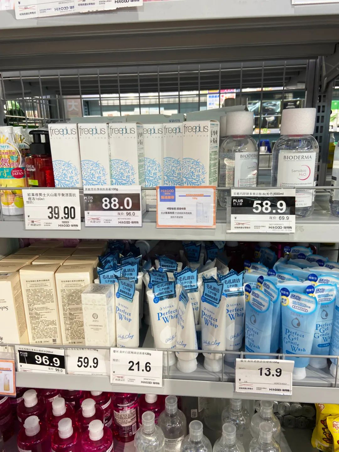 洗护区产品虽多,但仔细一看价格却并不十分美丽。比如特卖店拳头产品芙丽芳丝洗面奶嗨特购售价88元,而在距离它100米外的好特卖只要79元!