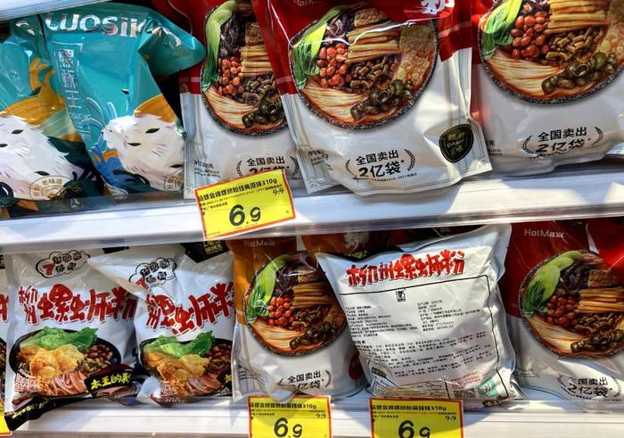 零食区也没有什么大便宜可以捡。自热火锅、卤味零食、泡面等价位和接下来两家临期商店相比并没有优势。