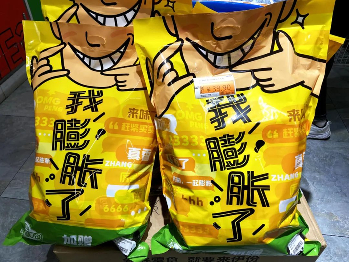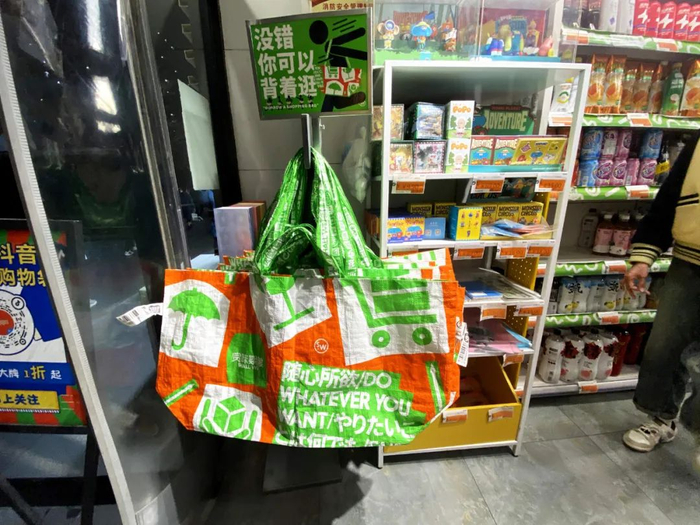 正当我为消费趋势忧国忧民,在商场负二楼,看到好特卖和嗨特购两家临期商店人满为患,每一个人都空手进去,拎着这么大一个购物袋走出来!脸上还充满了捡到大便宜的迷之微笑。
