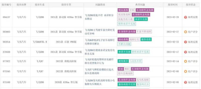 除了“缺乏品牌存在感”,雪上加霜的是,飞凡汽车还频繁处于车主投诉和维权的泥潭中。