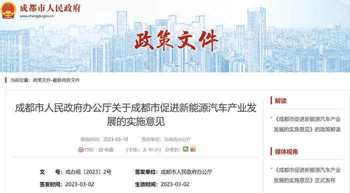 从成都市人民政府官网获悉,为促进新能源汽车产业发展,成都市制定了《成都市促进新能源汽车产业发展的实施意见》(以下简称《意见》)。