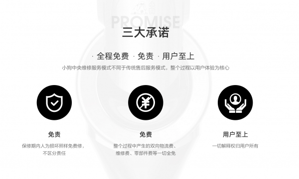 “中央维修”售后模式的“灵魂”在于,它在服务全流程、售后全场景均以用户需求为中心,围绕这一中心,小狗吸尘器提出“免责、免费、用户至上”三大承诺,“免责”条款一举解决了售后责任界难界定的问题,即使是人为损坏也照样免费维修;“免费”解决了用户高额维修的顾虑,维修产生的物流费、维修费、零件费一切全免;“用户至上”则区别于解释权归厂家所有的行业现状,让用户更具有话语权。为让用户送修更省心省力,小狗吸尘器设置了一个“中央仓”,由品牌官方亲力维修,用户只需要在家坐等快递员上门取货送货即可,维修方式简洁明了。可见,“中央维修”深度满足了消费者对于清洁电器售后服务的各种期待,因此广受用户好评。