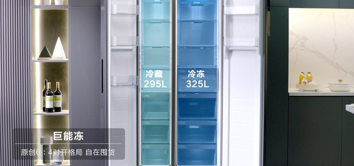 相对应的,用户对冷冻室储鲜的需求也更大了。凭借大容量、空间利用率高,对开门冰箱逐渐成为市场主流品类,不过,该类产品一直沿袭“冷藏大,冷冻小”的传统设计格局,和用户自在囤鲜的需求仍有一定距离。对此,海尔冰箱率先破局,上市海尔“全空间保鲜·巨能冻”冰箱新品,首创冻藏6:4对开新格局,冷冻空间比同容积冰箱多出约一个120L冷柜,600斤肉食都能囤得下。