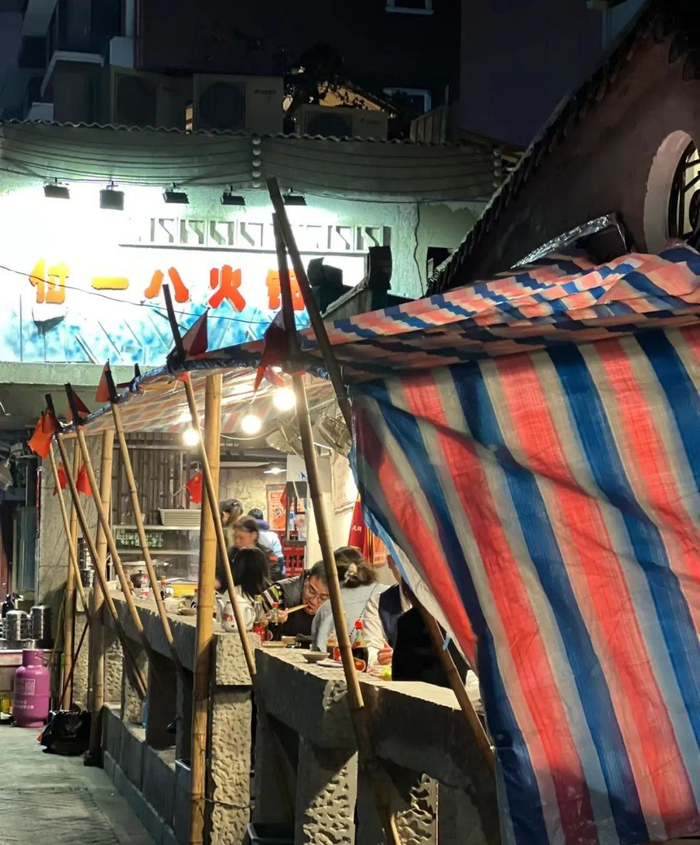 不到6点,夜市摊就已占满路边,很多门前有空地的餐厅,也纷纷摆出桌椅板凳,烧烤的、炒菜的、卖米的、卖面的,吆五喝六声、服务员催菜声、食材下锅声,不绝于耳,熟悉的人间烟火气,又回来了。