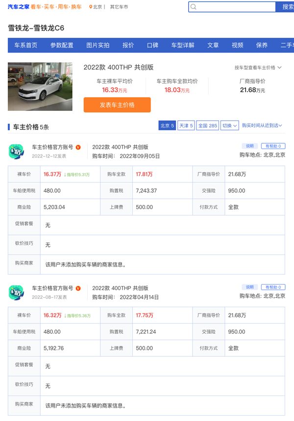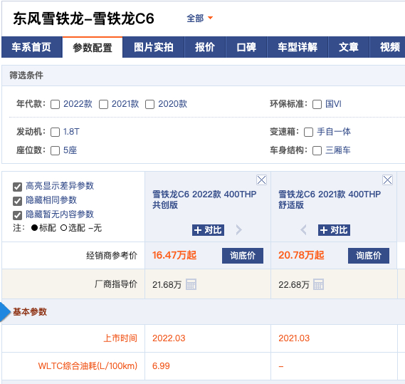 因“优惠 9 万”而爆红的“2022款雪铁龙 C6 共创版”,其实在 2022 年 3 月上市时的全国统一直售价是 16.47 万。