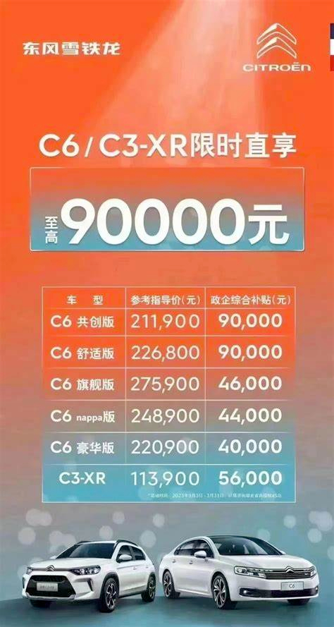 事情是这样的:3 月初,湖北政府联合多个东风系汽车品牌,为购买这些品牌新车的消费者提供大额优惠补贴。比如最近冲到 B 级车热度第一的东风雪铁龙 C6 ,最便宜的共创版厂商指导价 21.68 万,政府补贴 4.5 万,厂家补贴 4.5万 ,总计优惠 9 万,算下来裸车价只要 12.68 万。
